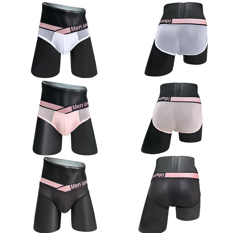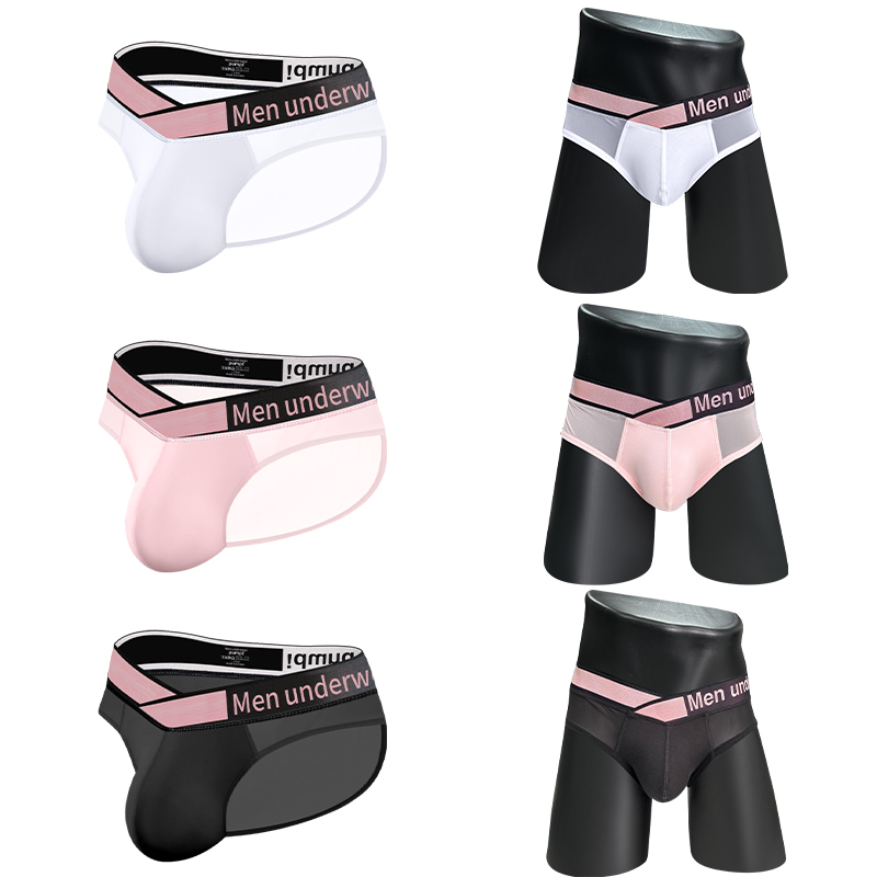 3PCS Men's Briefs Sexy Transparent Splicing Men Underwear Summer Ultra-thin Underpants Sports Breathable Male Fashion Lingerie