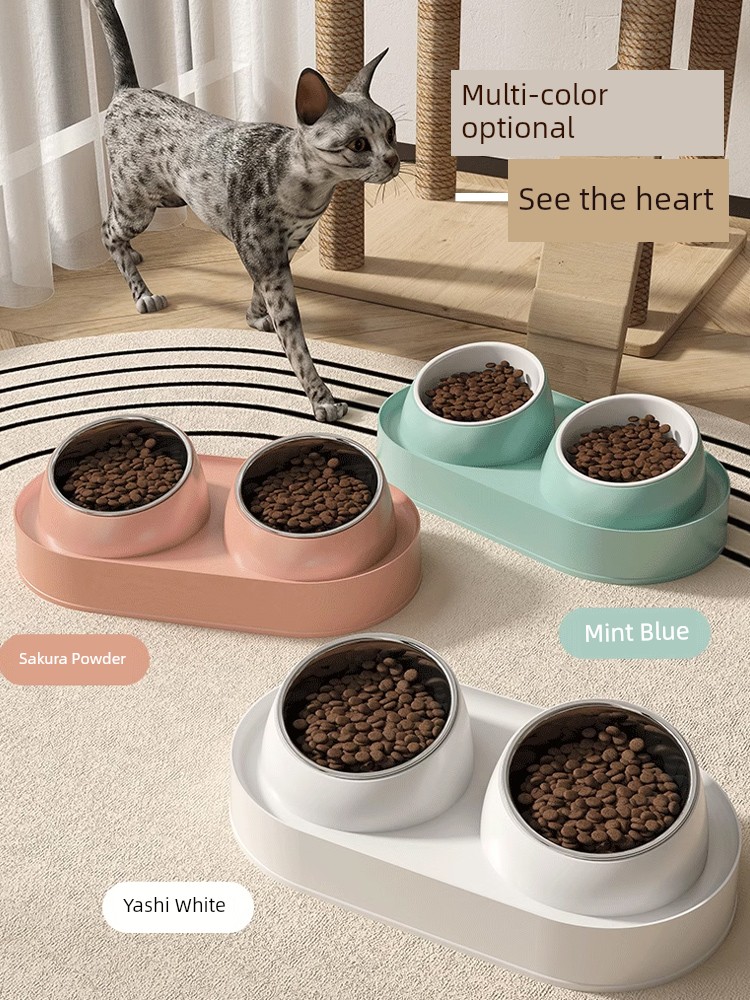 Cat Bowl Ceramic Cat Food Holder Pet Double Bowl Oblique Mouth Drinking Food Bowl Water Bowl Integrated Kittens Rice Bowl Dog Bowl Anti-Tumble