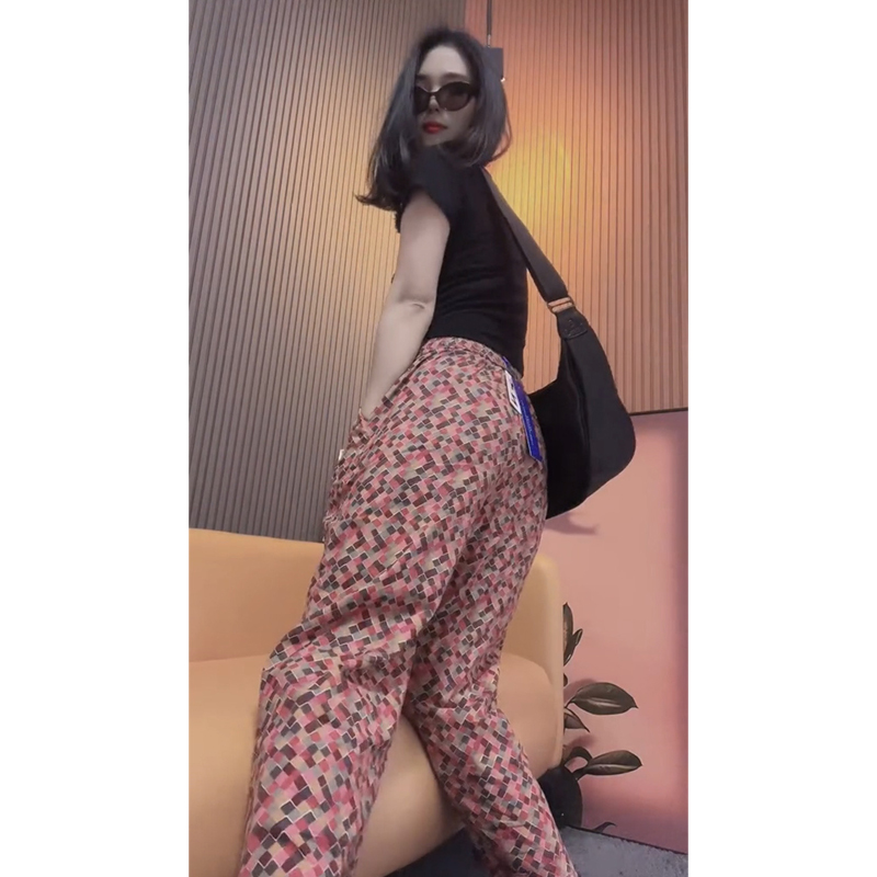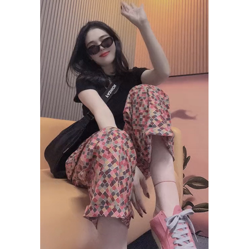 European Goods over Plus Size 150.00kg Retro Gingham Floral Casual Pants Women's Autumn New Arrival Younger Fashion Straight-Leg Pants Tide