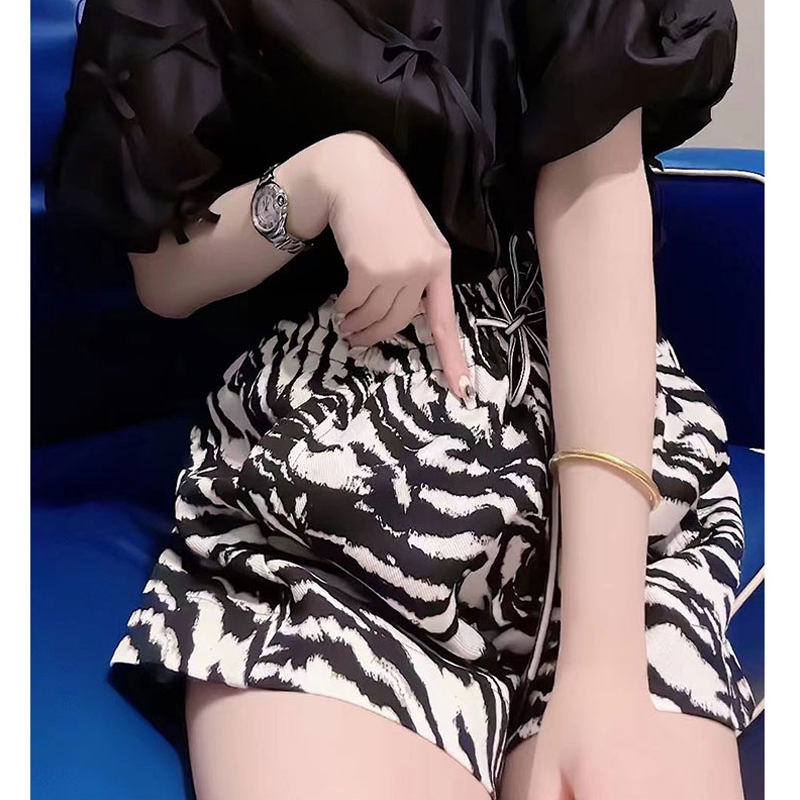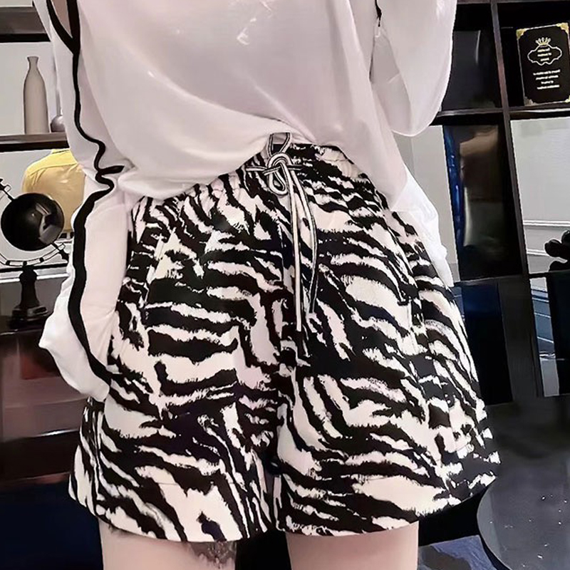 European Goods Plus Size 150.00kg Summer New Arrival Zebra Pattern Shorts Female Loose High Waist Slimming Casual Wide Leg A- line Hot Pants