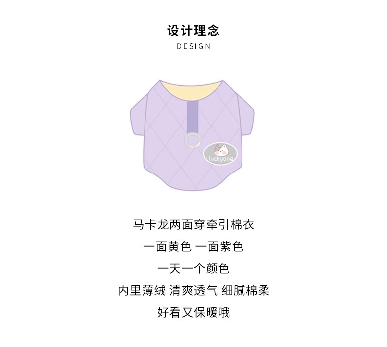 Hippie Dog Pet Dog Winter Macaron Double-Sided Wear Traction Warmth Retention Material Clothes Bichon Cat
