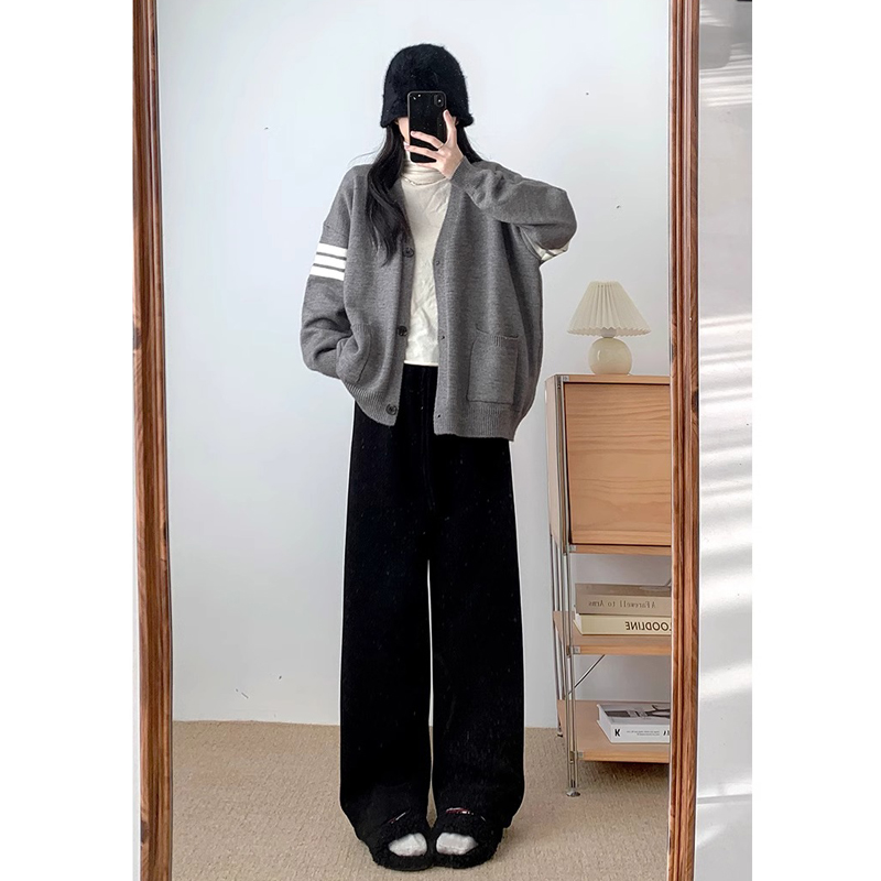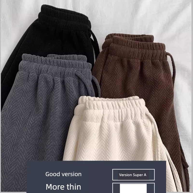Hong Kong Style Retro Herringbone Chenille Plus Size Loose Pants Women's Fall and Winter High Waist Drooping Fleece-lined Thickened Casual Pants Fashion