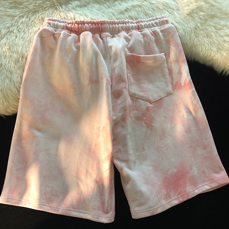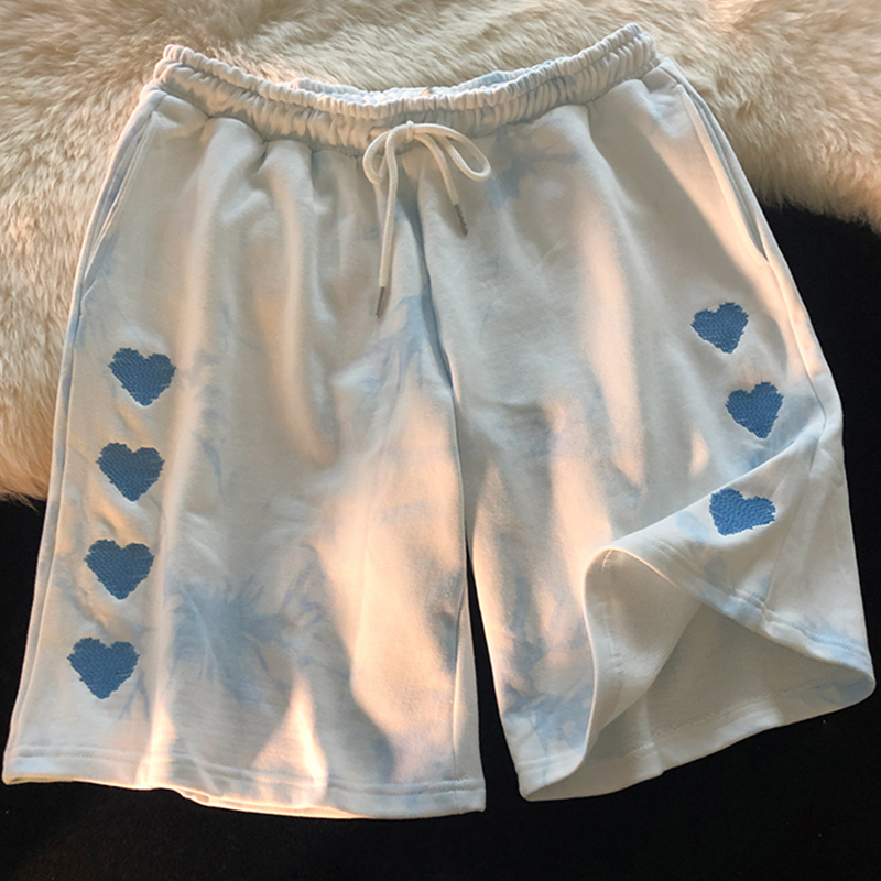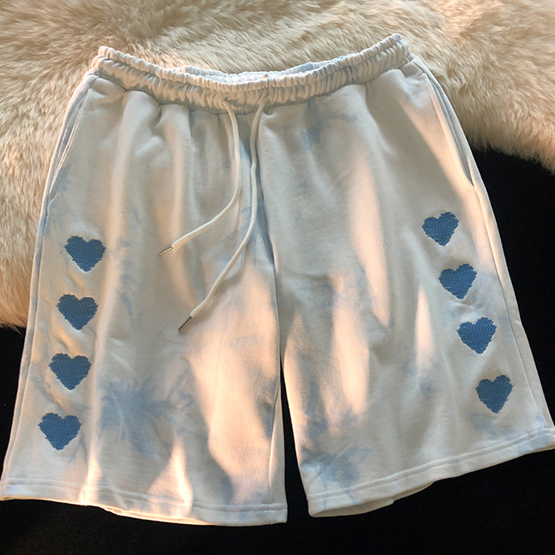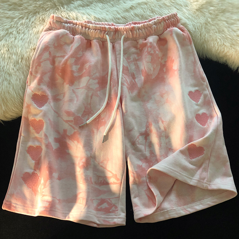 Plus Size Summer Clothes High Street Heart Sports Shorts Women's Loose Straight-leg Half Length Middle Pants Tie-Dye Gradient Casual Sweatpants Tide