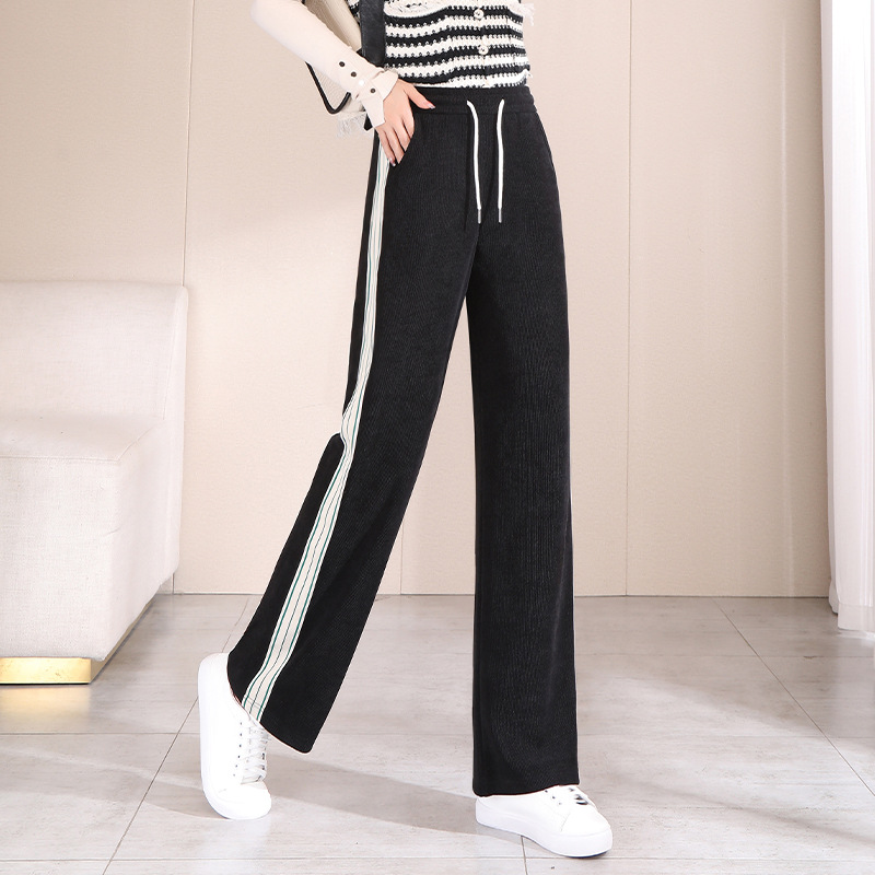 These women's casual sports pants feature a popular Korean style design with a loose straight-leg cut and stylish side ribbon stripes. The fabric is comfortable and breathable, suitable for various occasions. Whether for sports, leisure, or daily outings, they are easy to style and showcase your fashion sense. Designed to be slimming and versatile.