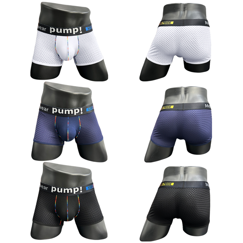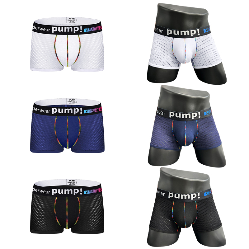 3PCS Men's Boxer Mesh Breathable Sexy Sports Fashion Low Rise Boxershorts Male Solid Color Fashion Man Underpants Trunks