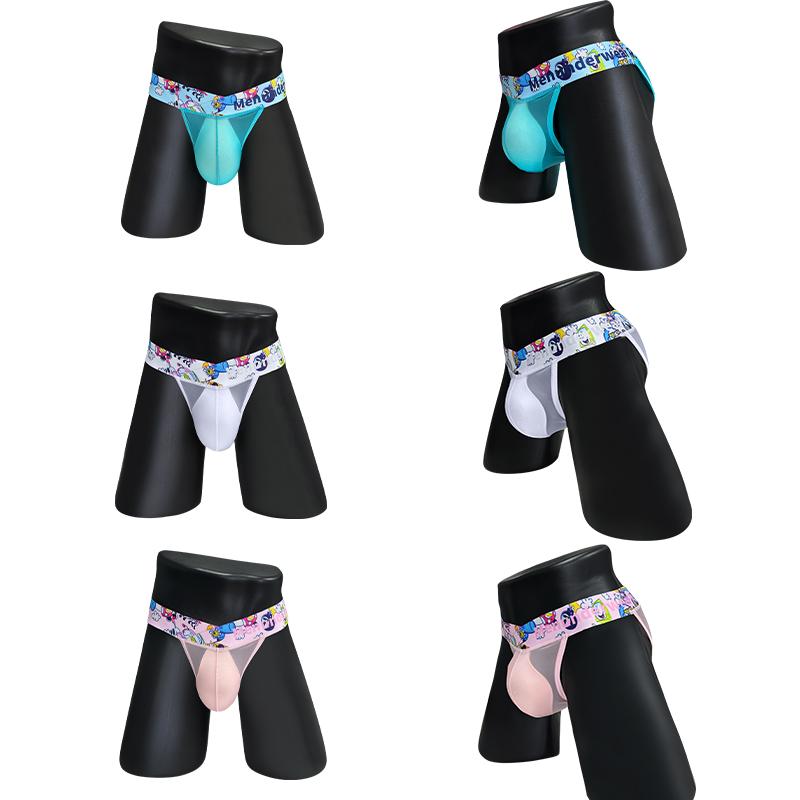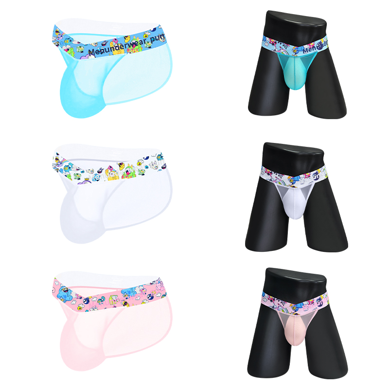3 PCS Ice silk Ultrathin Men's Soft Briefs Comfortable Sports Transparent Quick dry Man Underwear Low Waist Sexy Cartoon Summer Underpants