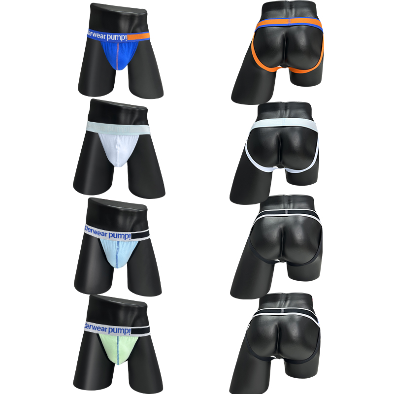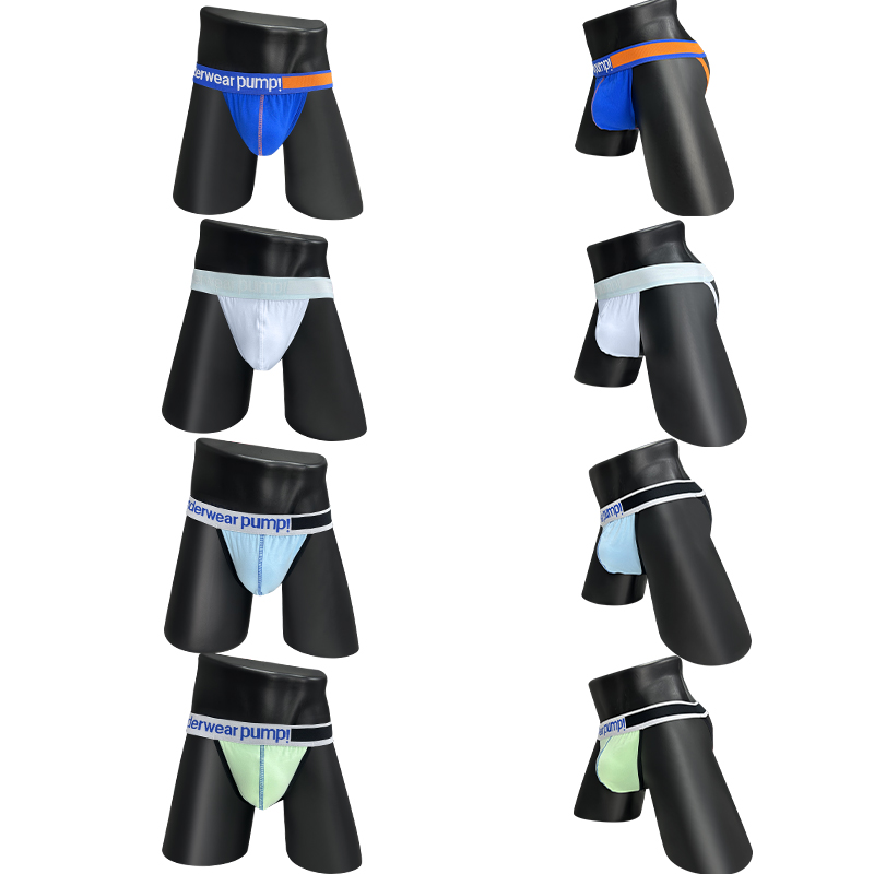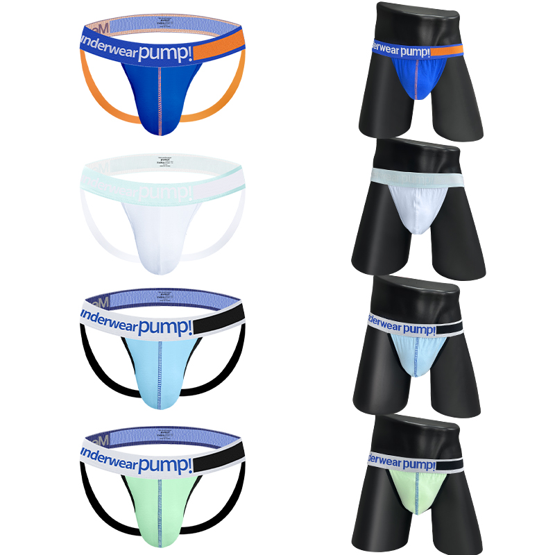 4PCS Double Men's Sexy Thongs Sissy Bikini Sports Fitness Breathable Men Jockstrap Underwear Cotton Low Waist T-Back Man U convex Panties