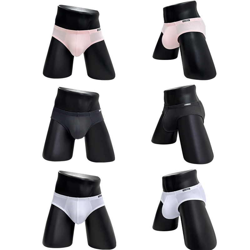 3PCS Sexy Men's Briefs With Hollowed Out Back Design Low Waist U convex Bikini Underwear For Men Erotic Sissy Triangle Underpants
