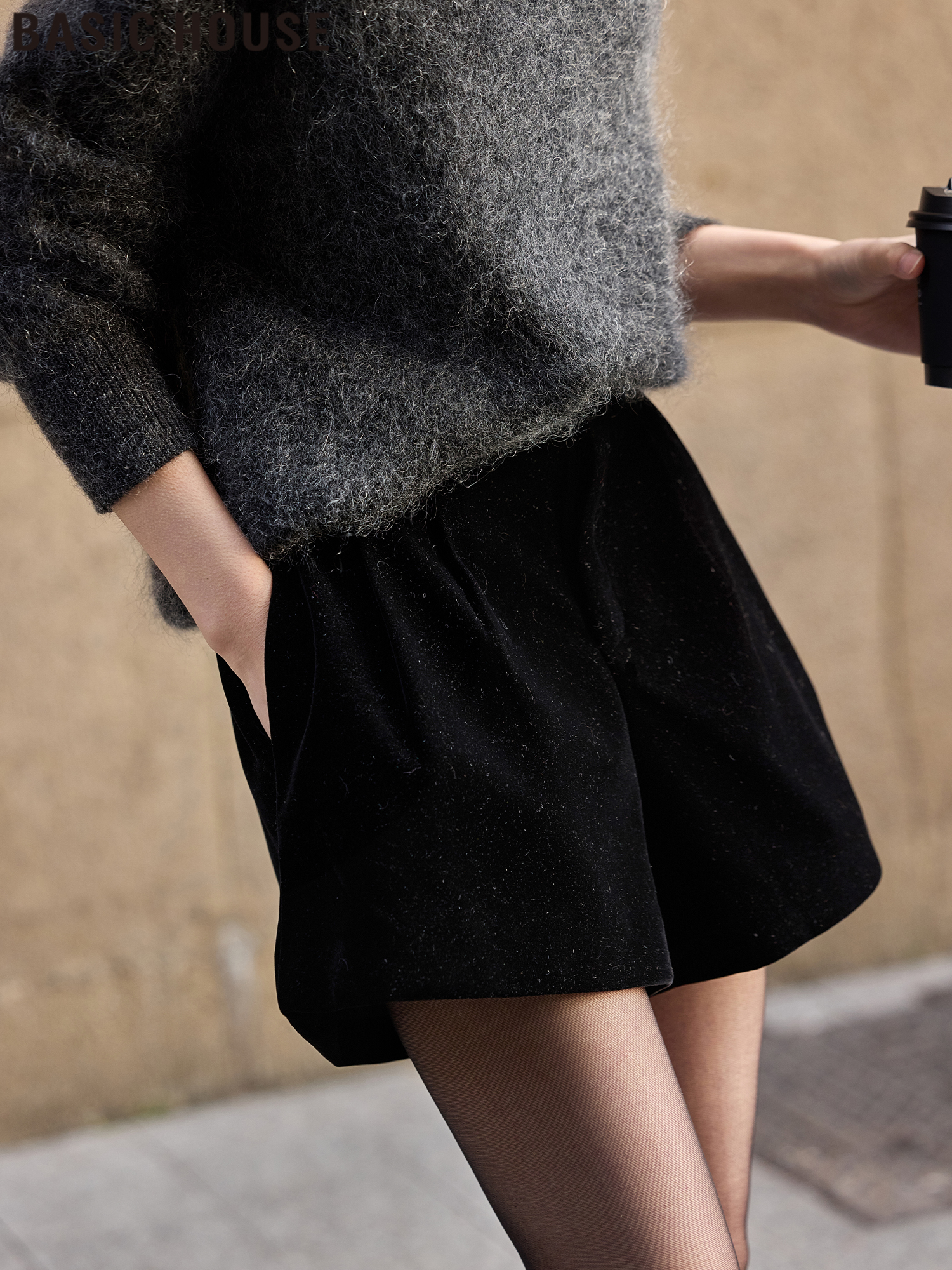 Basic House/Baijiahao верхняя одежда с ботинками, Черные Шерстяные Шорты А-силуэта, Весна 2025, Новинка, Женская Одежда