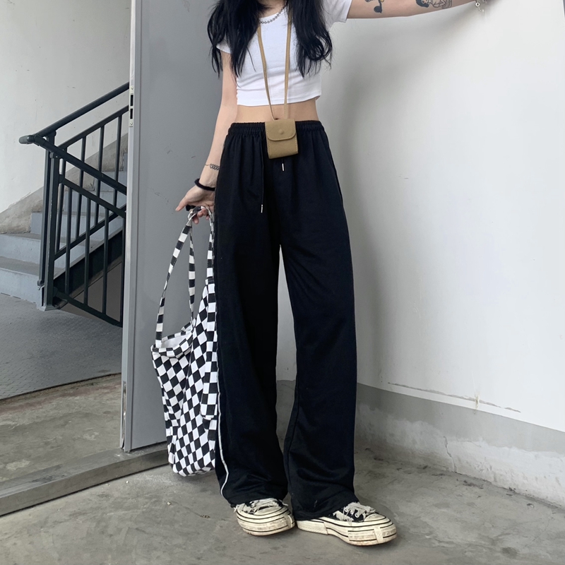 Очень большие размеры, 100,00 кг-150,00 кг, свободные брюки, женская мода, летние брюки-метлы в стиле K, спортивная мода, повседневные прямые брюки