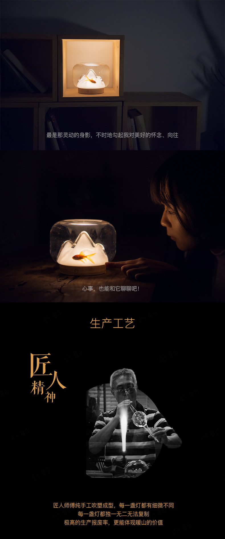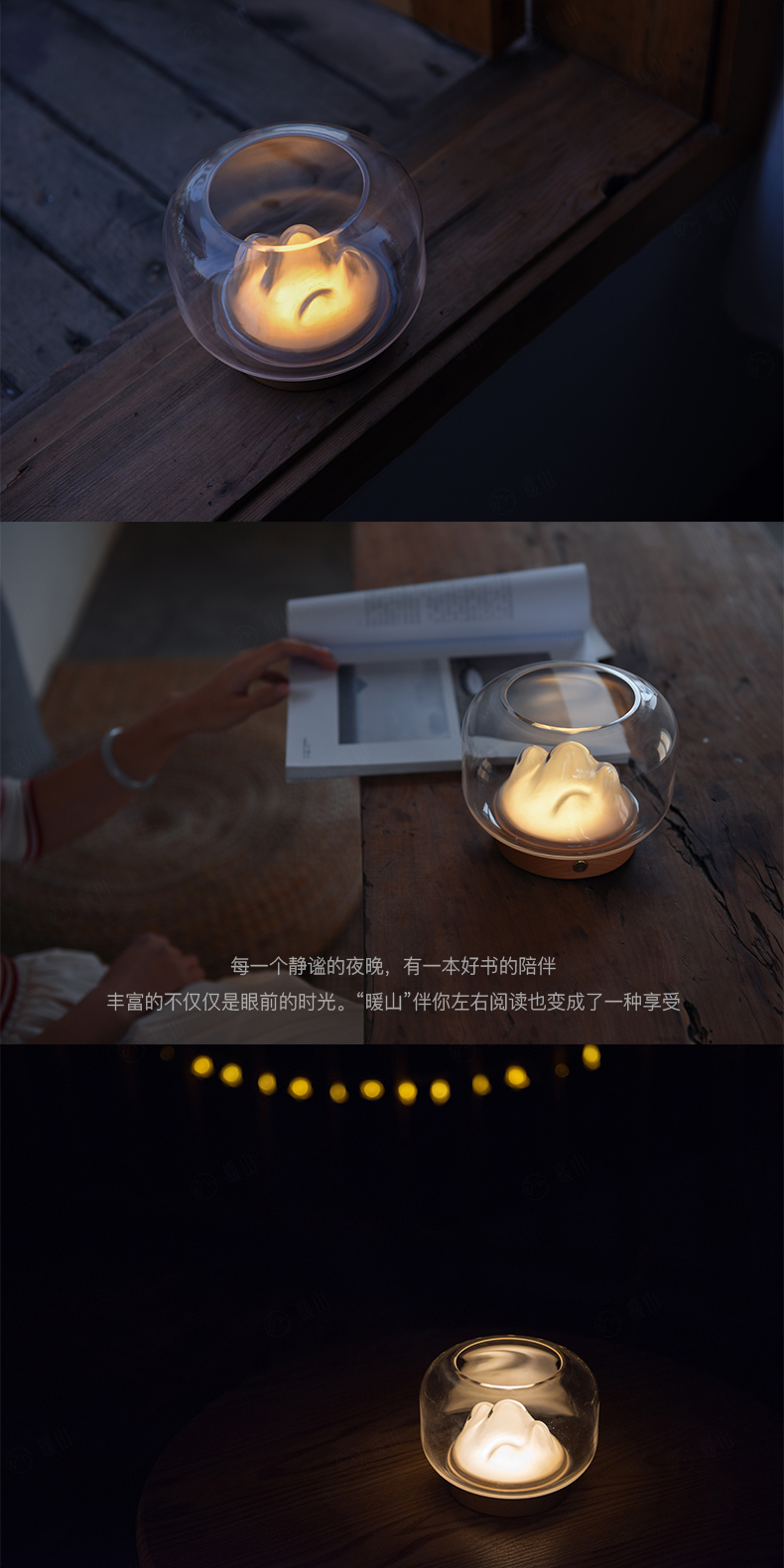 Настольная мини-лампа "Теплая гора", креативная стеклянная светодиодная лампа, которую можно использовать для выращивания рыбы и растений, популярная зарядная лампа, сопровождающая чтение, мини-лампа "Теплая гора" [можно выращивать рыбу и растения]