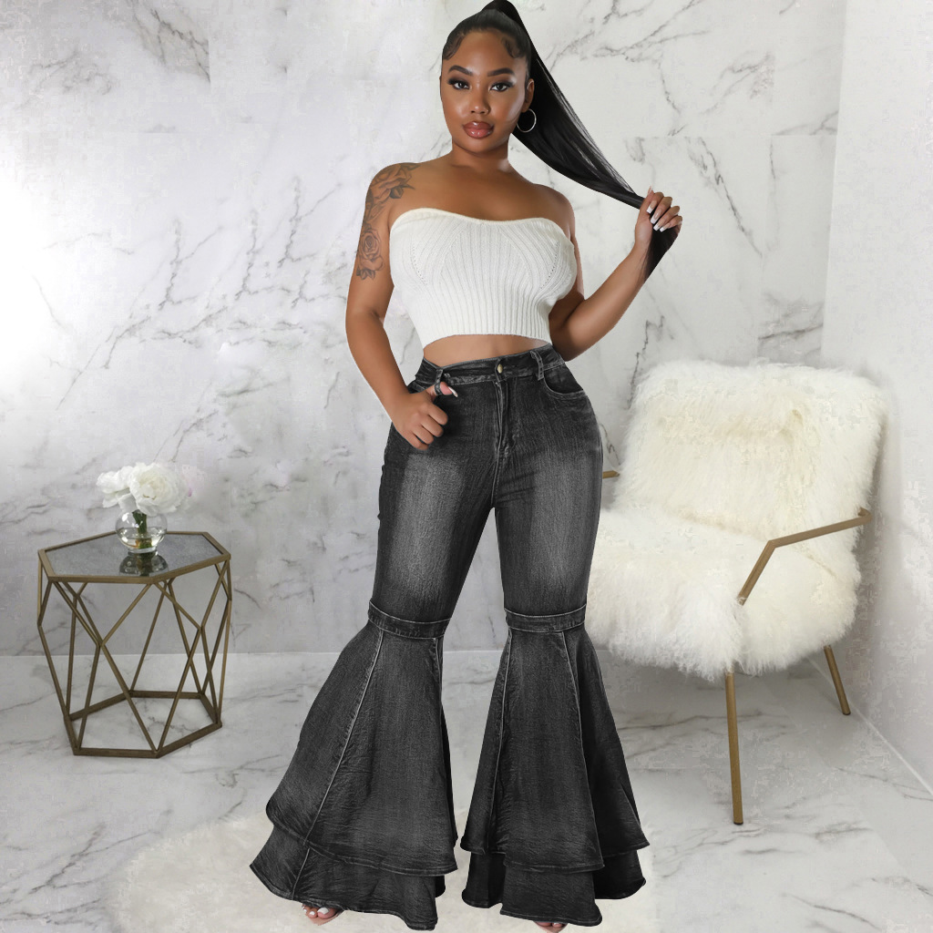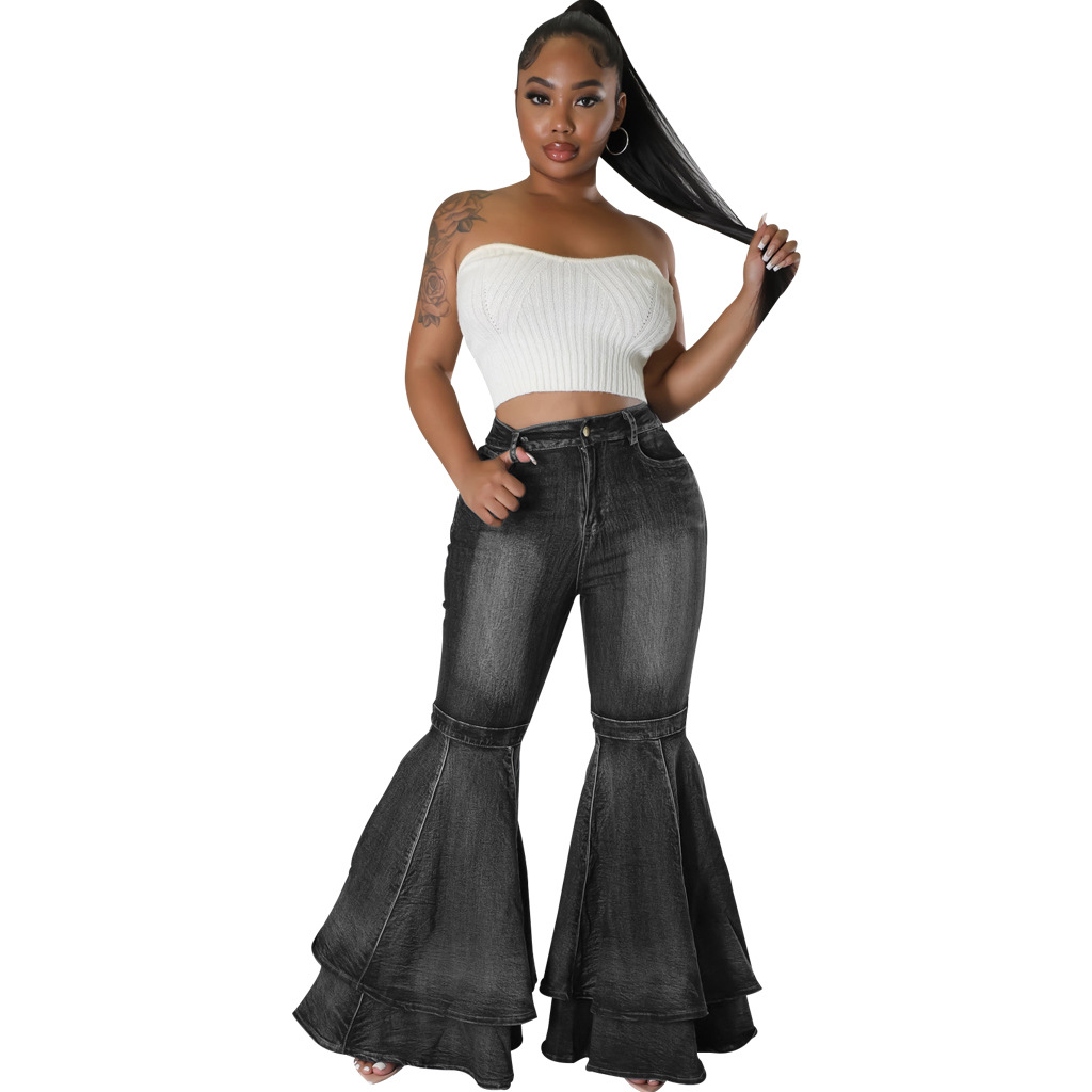 Женские европейские и американские модные джинсовые брюки-клеш с широкими штанинами, универсальные, эластичные