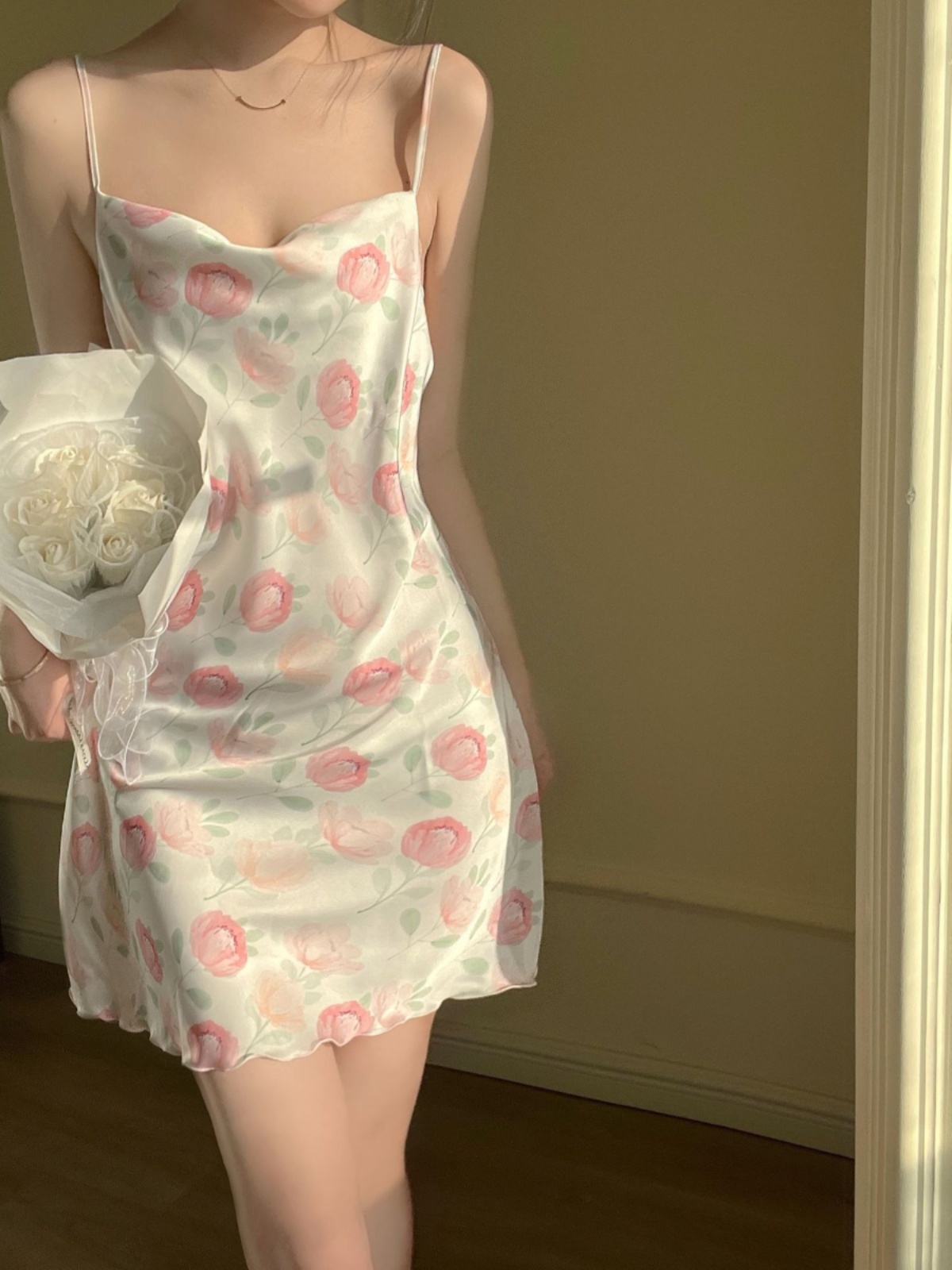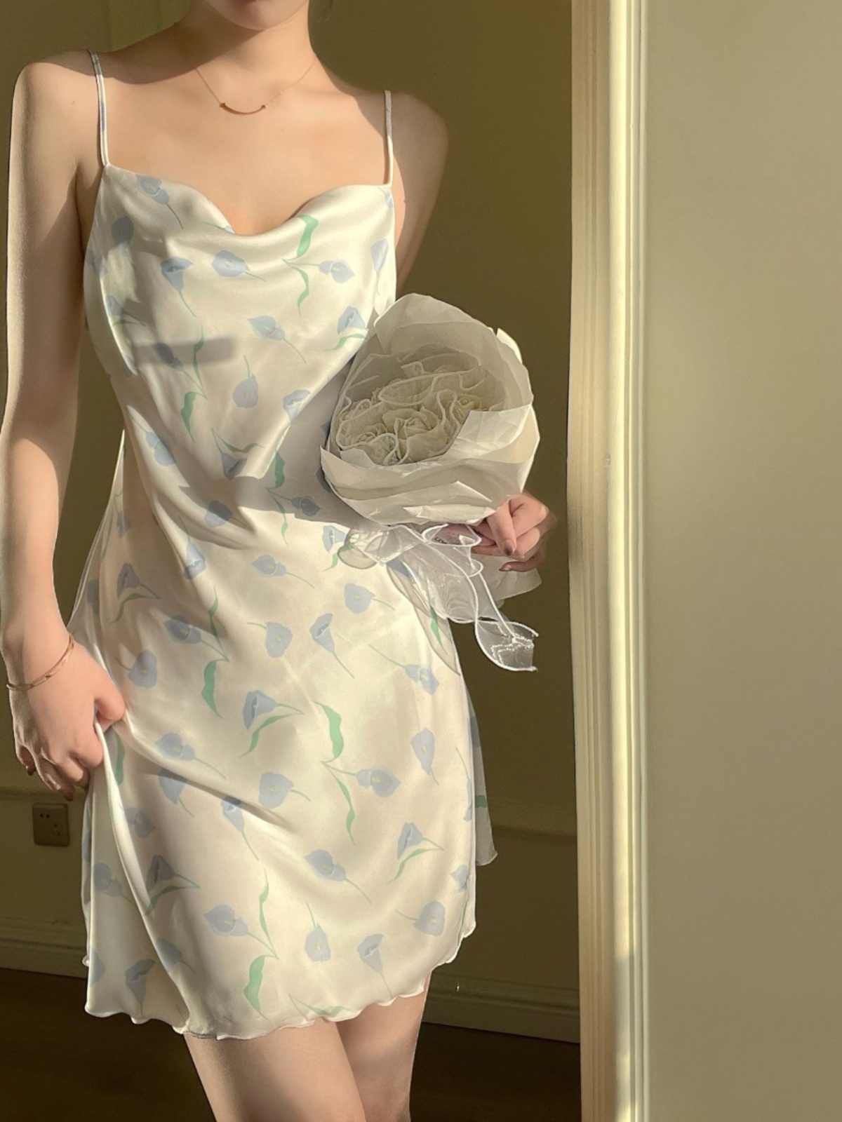 Женская сексуальная пижама-юбка, летнее ночное платье из ледяного шелка на бретелях, шикарное, чистое желание, новое поступление 2024, домашнее платье