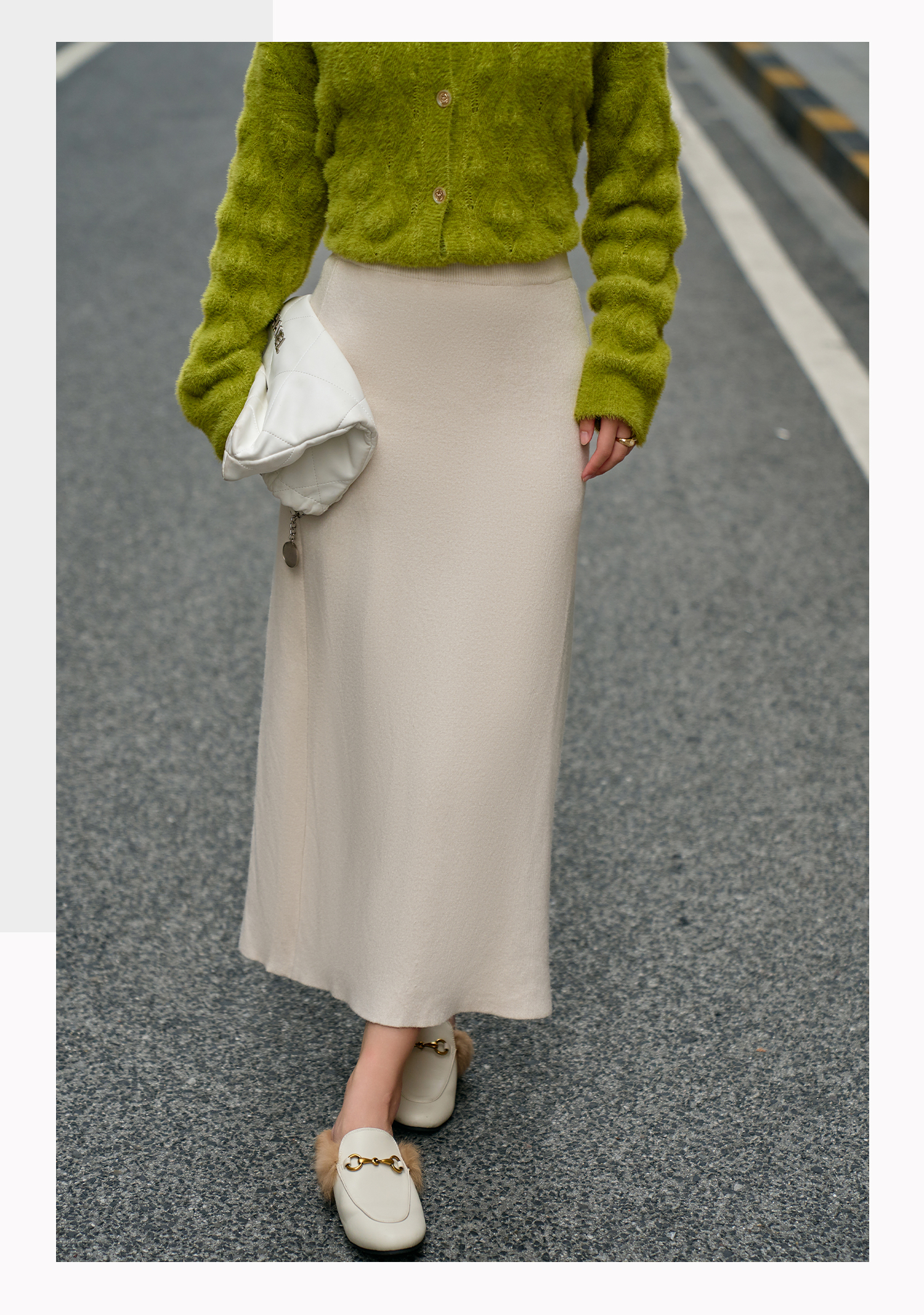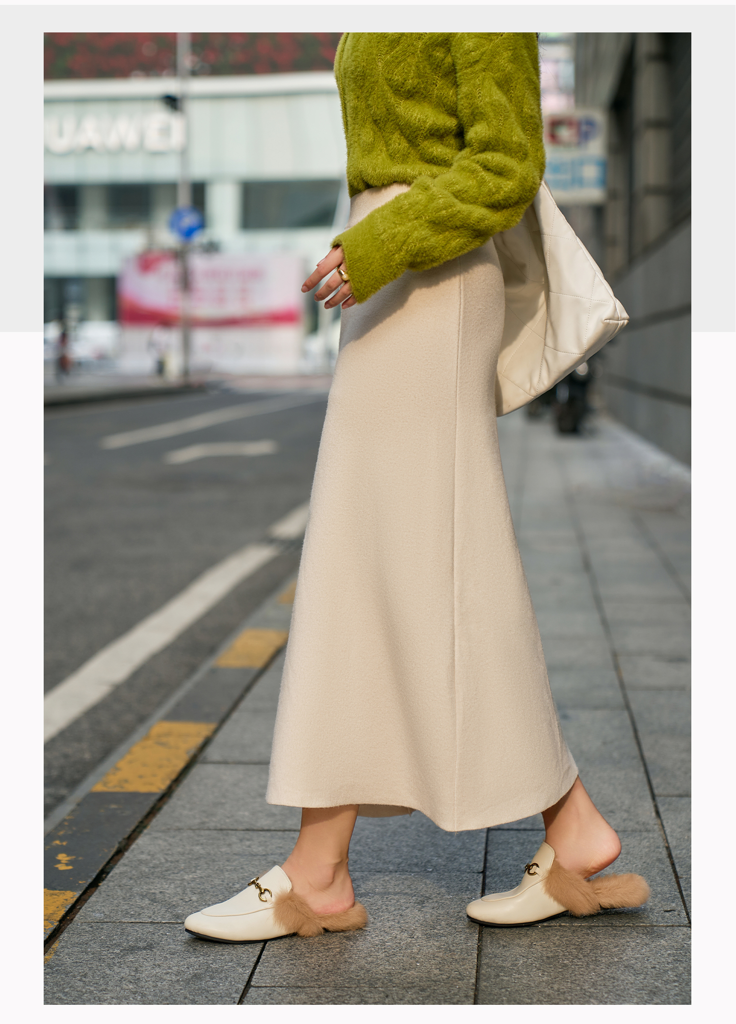 基础款/百家号高腰 all-matching A-line 针织羊毛裙 女 2025 春季新款