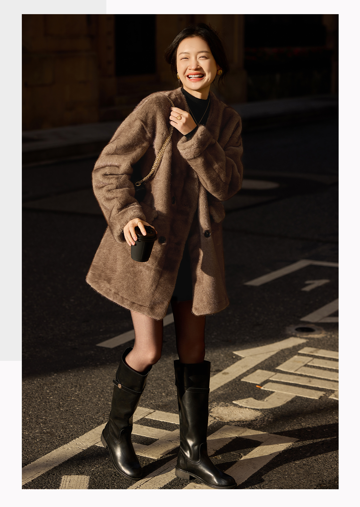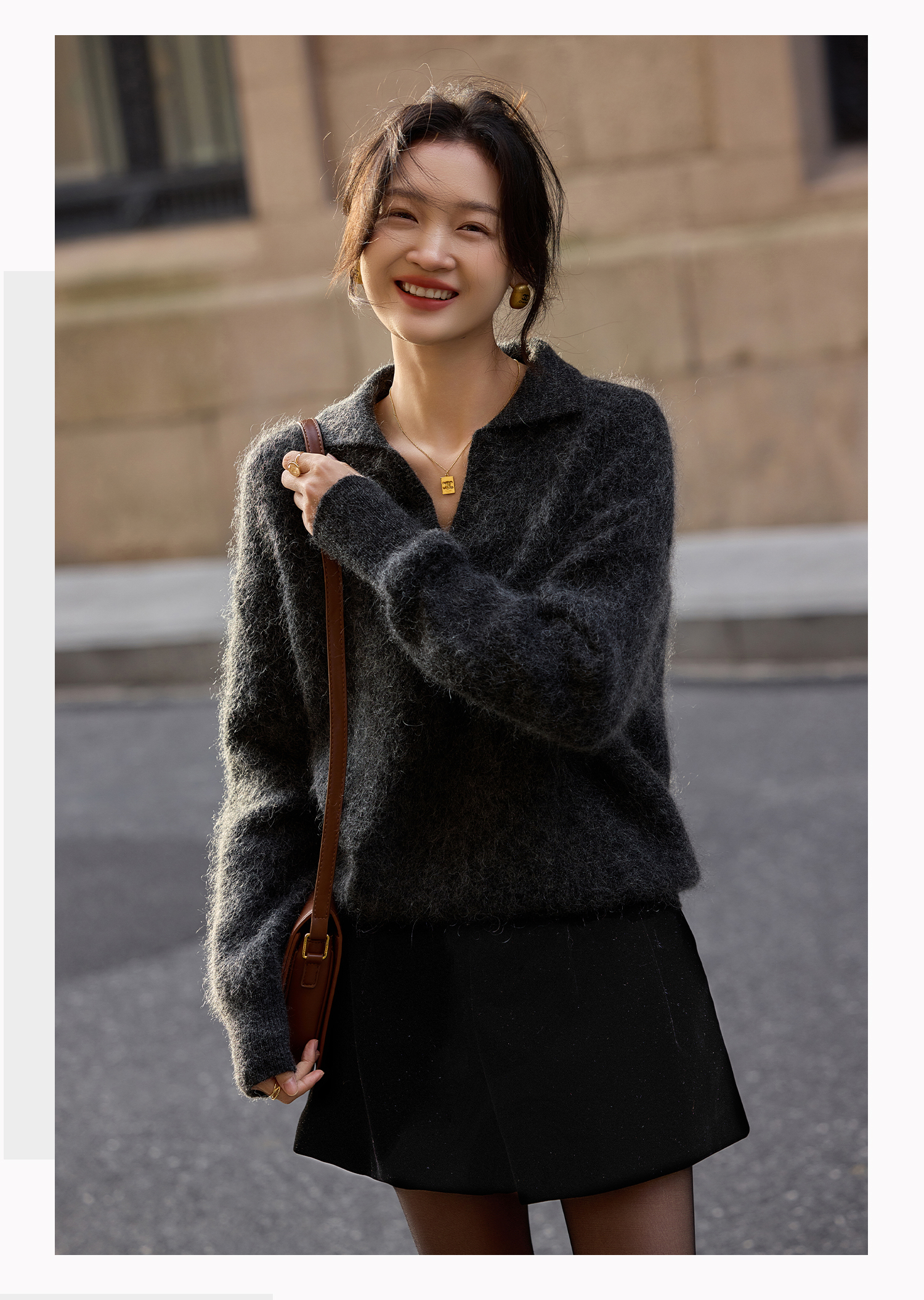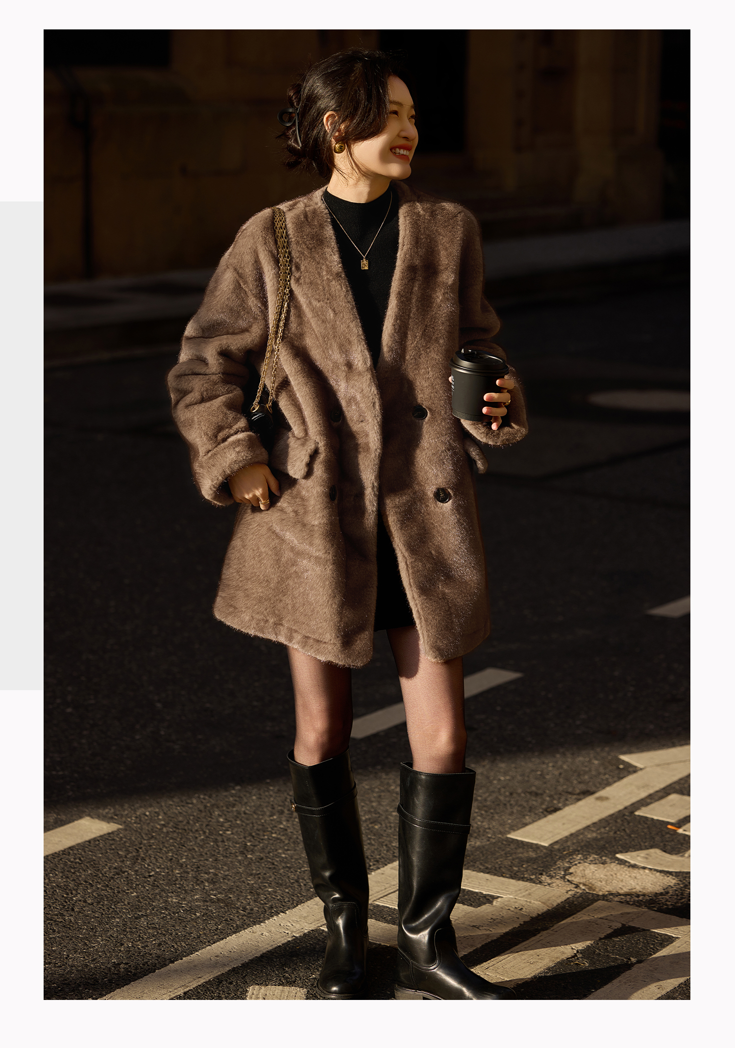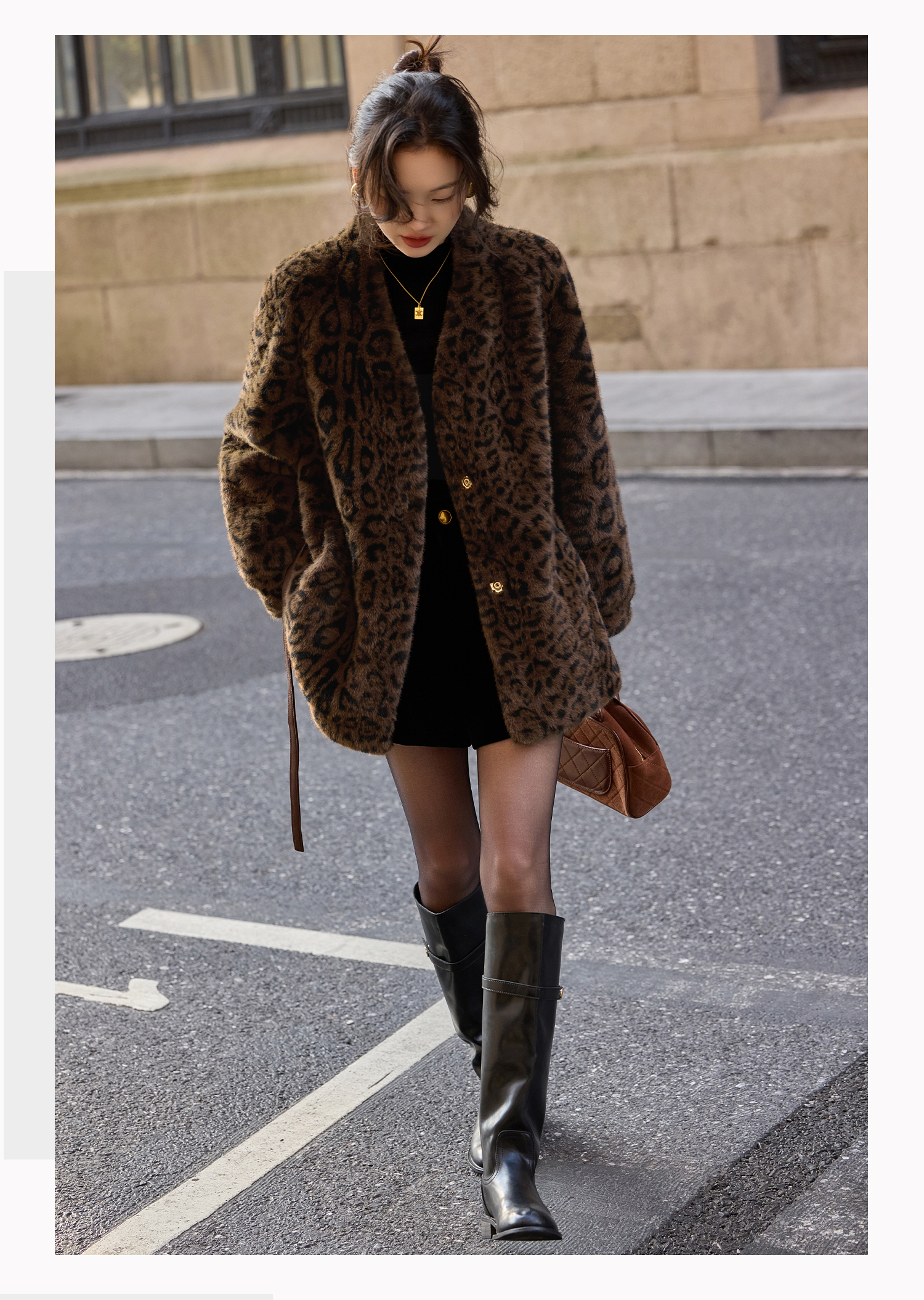 基础款家居服/百家号 外搭靴子 A字型黑色毛呢短裤 2025春季新款女装