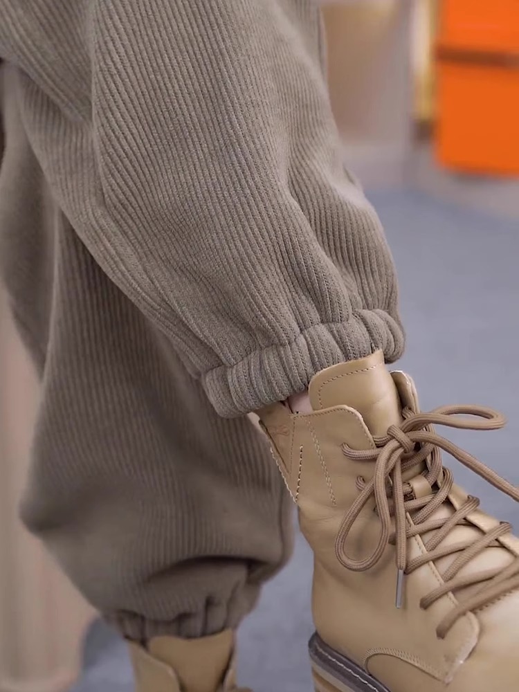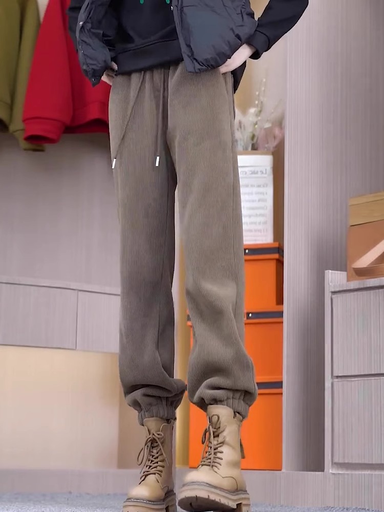 加绒高腰宽松休闲哈伦裤棕色女装