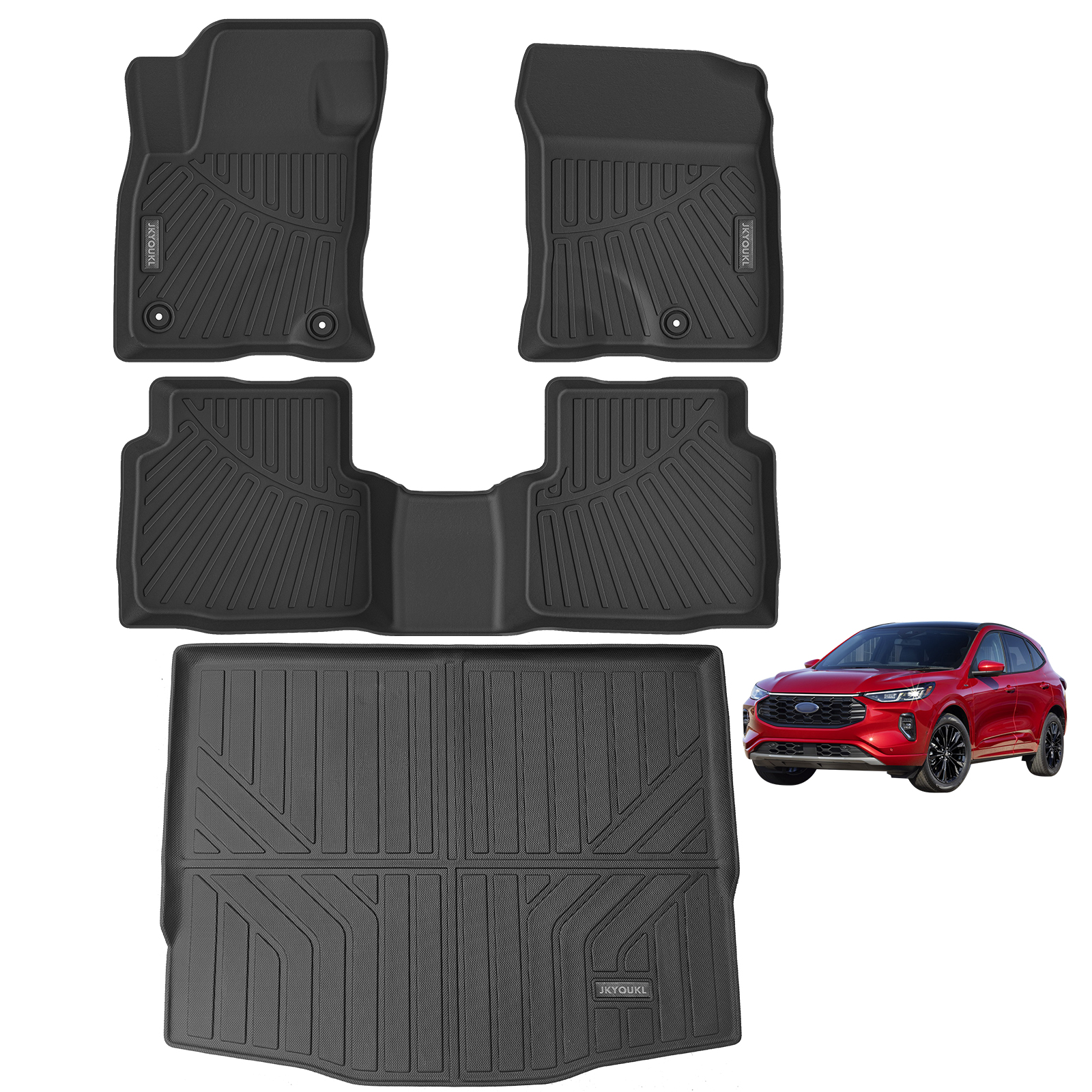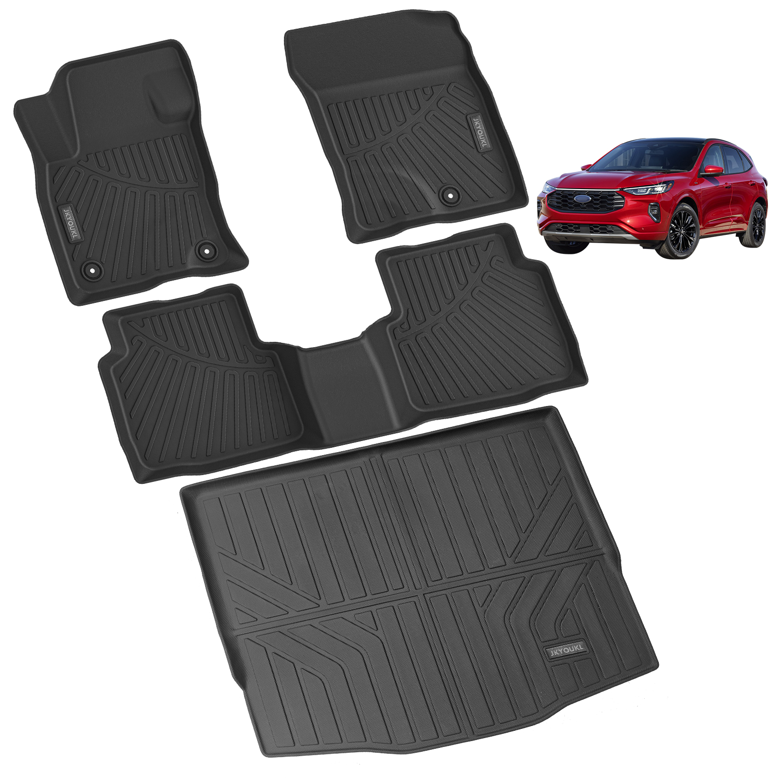 【All-weather protection 】JKYOUKL for Ford Escape 2020-2023 2024 is designed for long-term use. They have specially designed lines and upward edges that can hold snow, shoe dirt, rain, imperceptible dust, or accidental spills to protect your car from dirt and clutter, keep you in a good mood while driving.