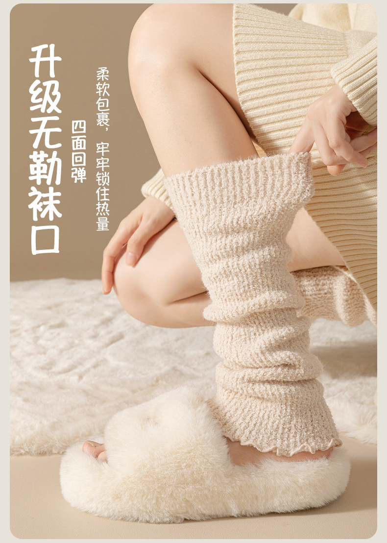 护膝脚袜 女秋冬长筒袜女摇粒绒加厚保暖堆堆袜冬季打底袜
