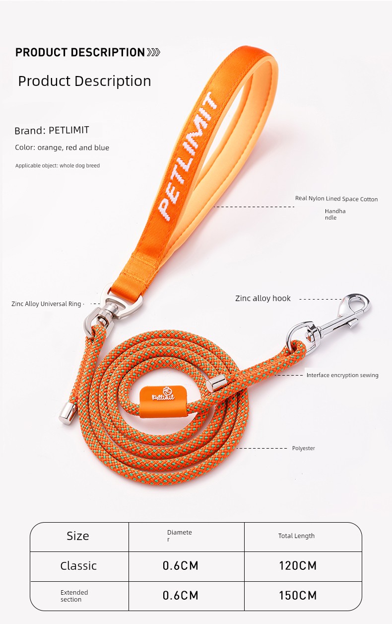 此款牵引绳专为小型犬设计,采用优质攀岩绳材质,单绳承重达500kg,确保您的爱犬安全。防打结设计让出行更省心,手柄柔软舒适,适合日常遛狗使用。