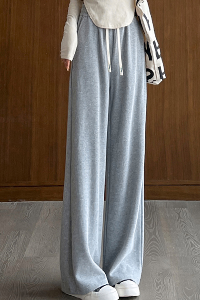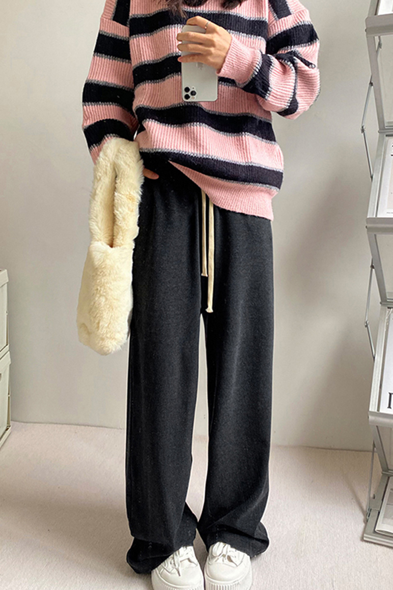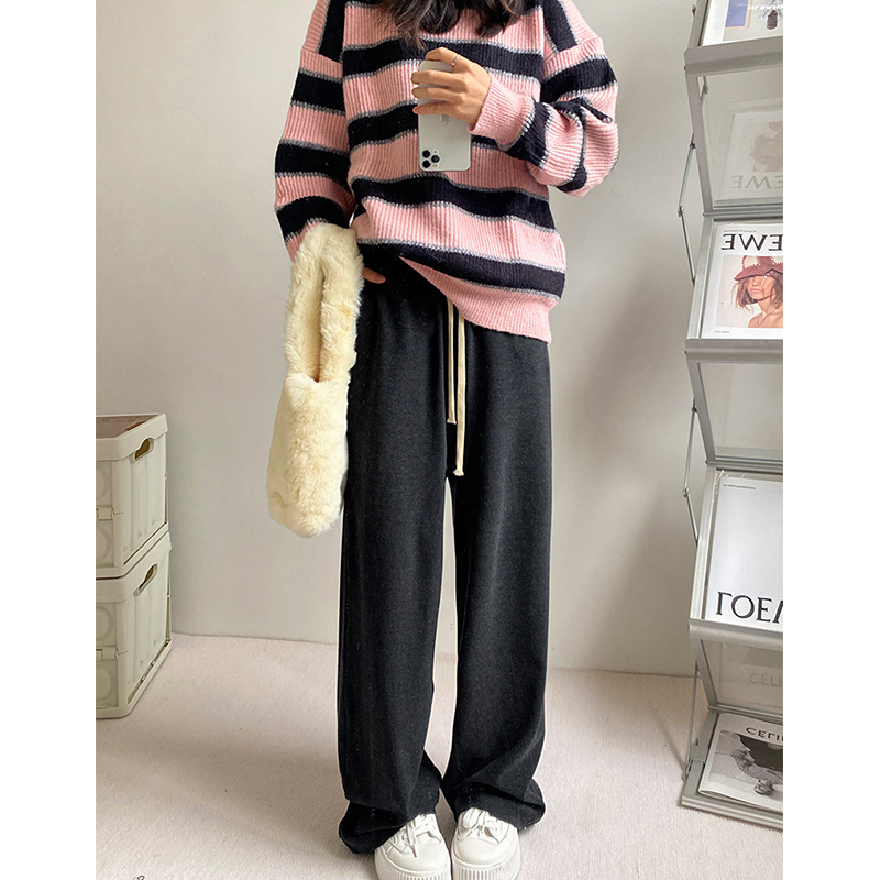 韩国东大门特大码1.00 Kg-150.00 kg休闲裤女秋季冬季宽松大码女装抓绒加厚阔腿裤