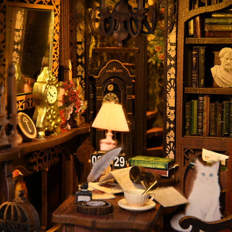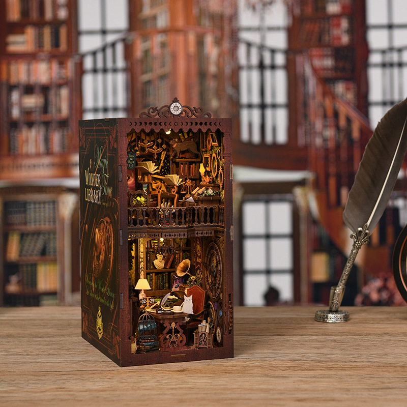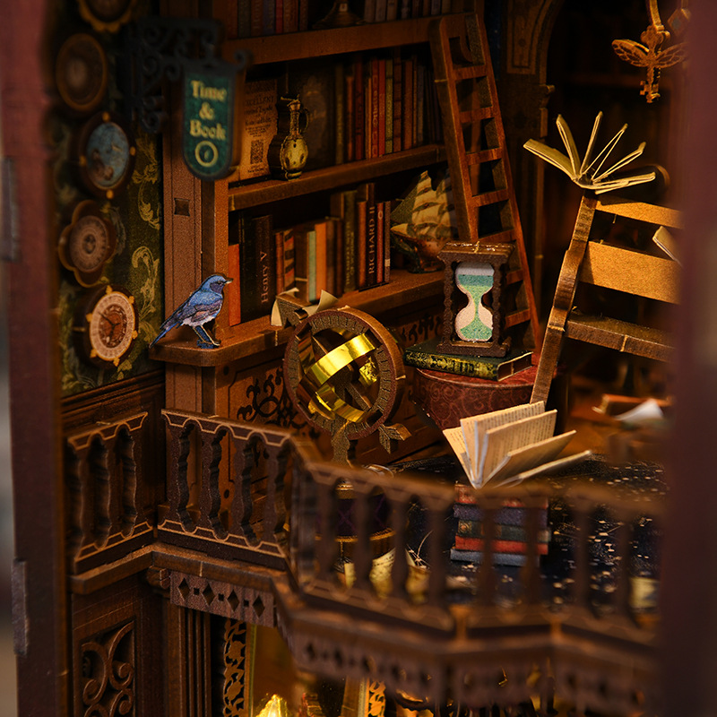 时间书社图书馆diy手工木质书立3d立体拼装模型生日礼物原创设计