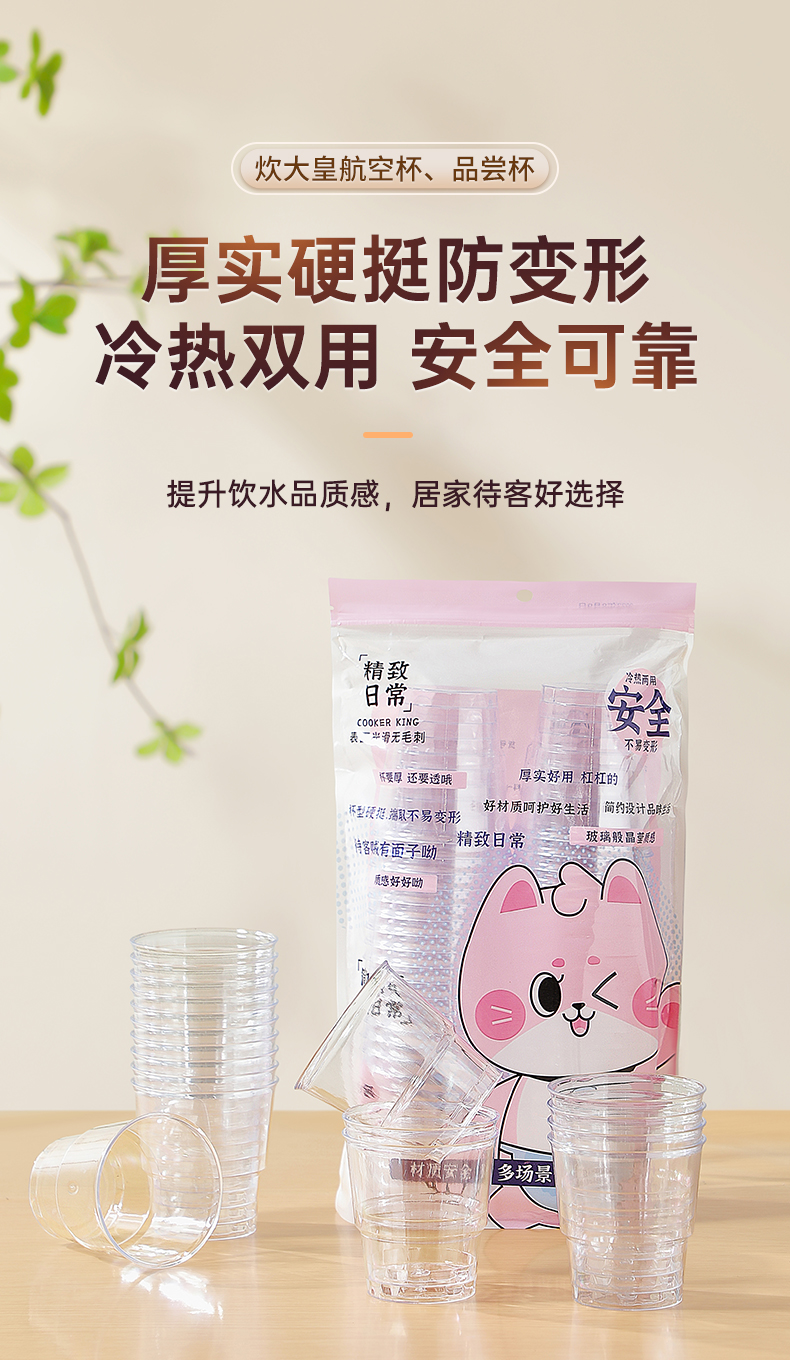 Cooker King Disposable Cup Plastic Cup Transparent Cup Thickened Hard Straight Commercial For Home Wholesale Water Cup Small Tea Cup