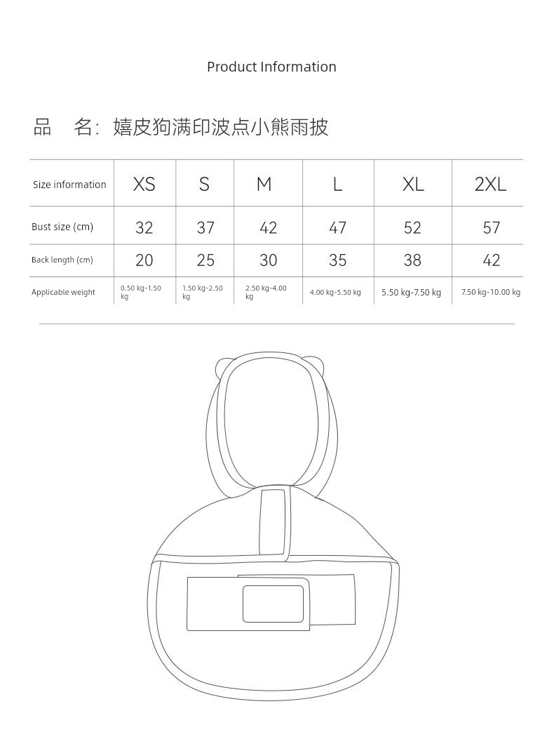 Hippie Dog Full Printed Polka Dot Bear Dog Poncho Rain Traction Pet Waterproof Two-Legged Cloak Poncho Clothes